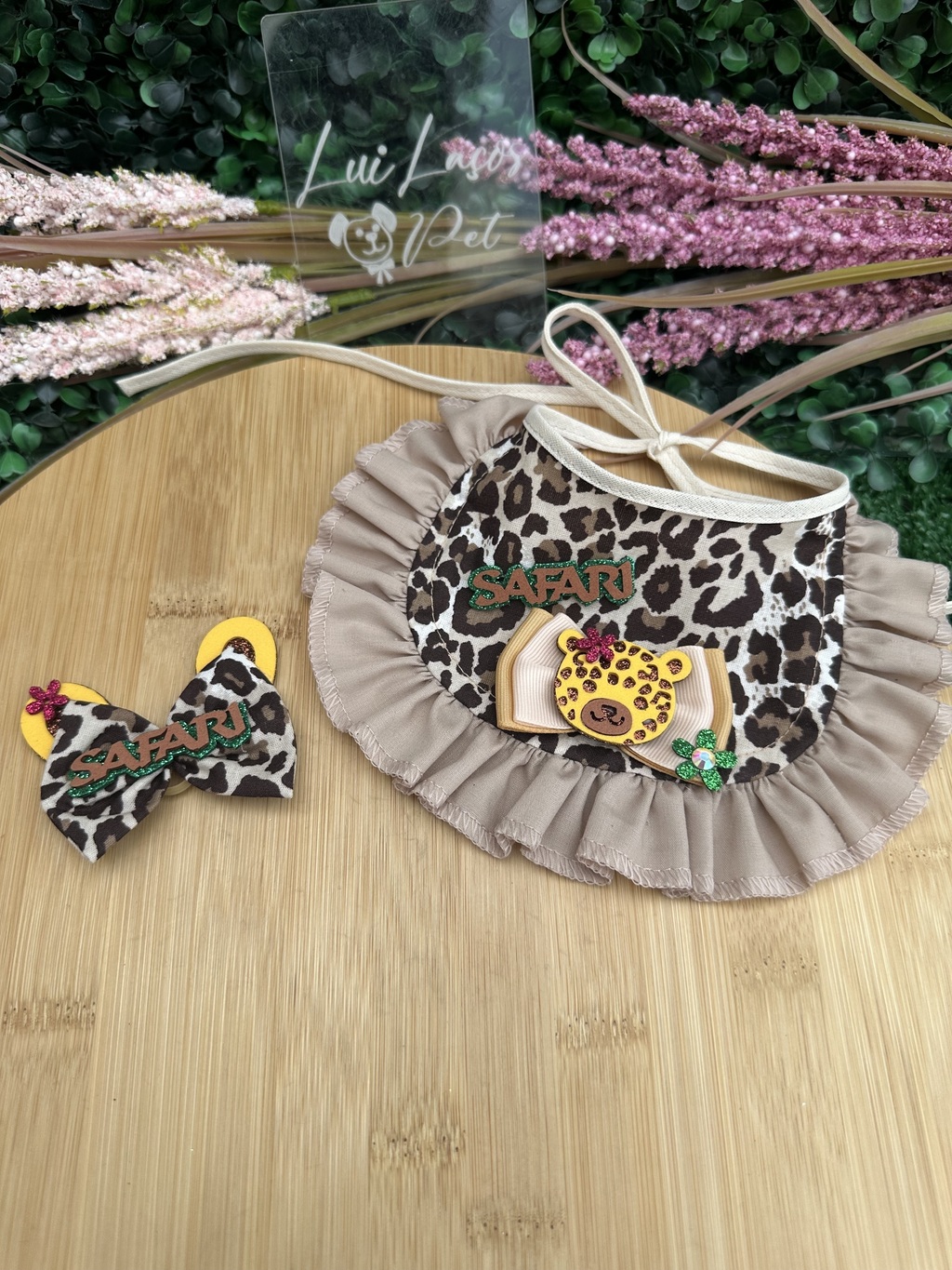 Conjunto Tecido Onça c/ 2 kits (2 babadores + 2 laços)